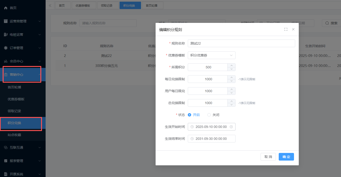 - 积分兑换优惠券需要与积分商城功能配合使用