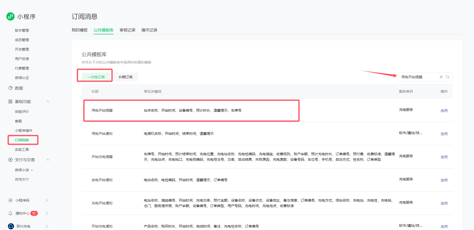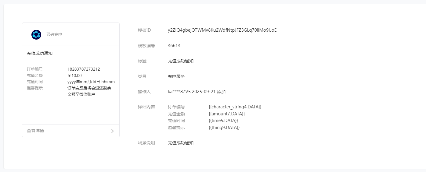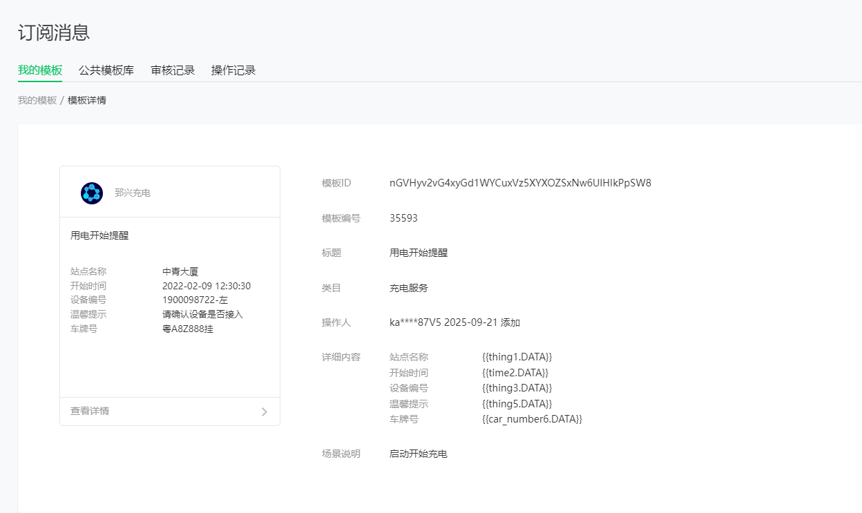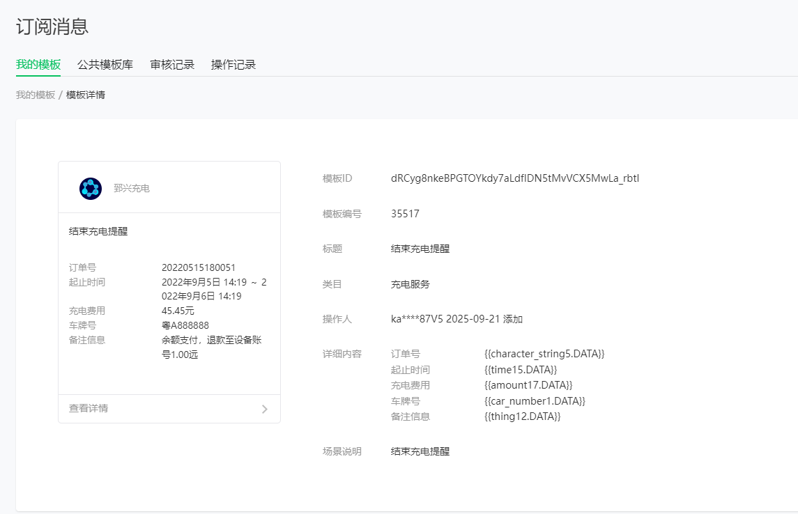 完成以上步骤后,可通过实际充电操作测试消息推送是否正常: